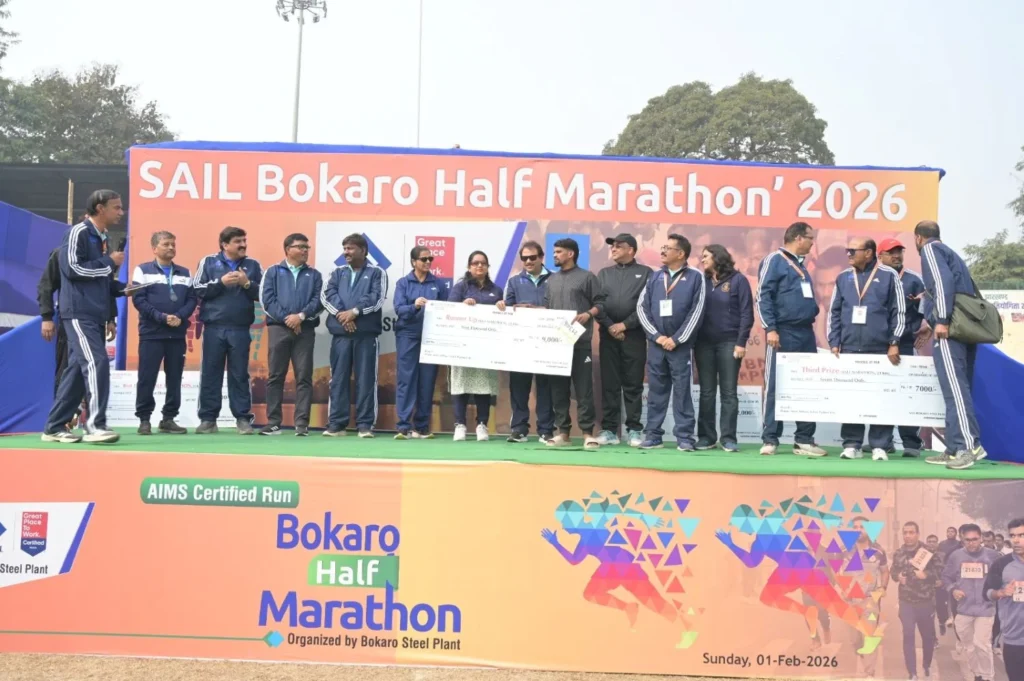 बोकारो हॉफ मैराथन को डायरेक्टर इंचार्ज प्रिय रंजन ने फ्लैग ऑफ किया। इस दौरान बोकारो स्टील प्लांट के एग्जीक्यूटिव डायरेक्टर्स, डीआईजी (सीआईएसएफ) एम मित्तल सहित अन्य अधिकारी उपस्थित थे।