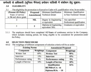 अनुरोध किया गया है कि उपरोक्त संशोधनों को आगामी (जूनियर आफिसर्स) प्रमोशन (जेओ 2026) में लागू कर कंपनी के शॉप फ्लोर प्रबंधन को सुदृढ़ करने की कृपा करें। इससे अधिकारियों की कमी का सामना कर रहे विभिन्न विभागों को आवश्यक राहत प्राप्त होगी।